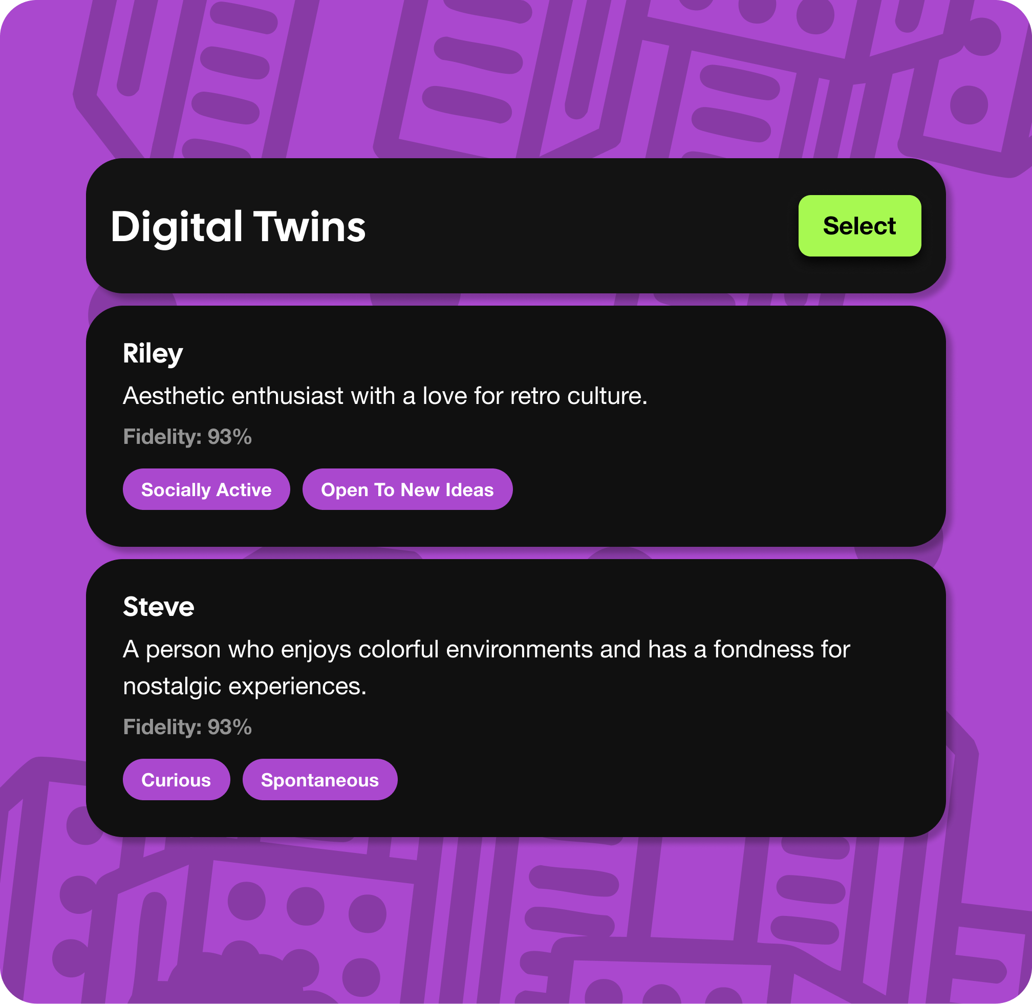 These aren’t proxies. They’re high-resolution reflections of your audience. True-to-life Digital Twins that show exactly how your work will land before it ever launches. Less gut feel. More human signal. Built by a team that has spent years helping brands connect more meaningfully and more effectively with the people who matter most.